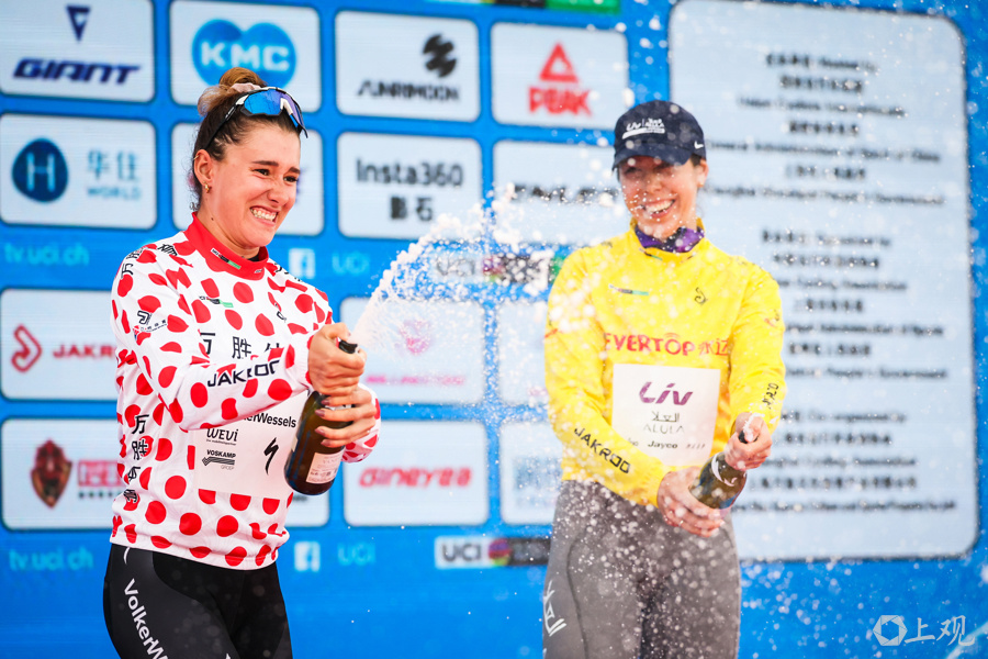 最终,来自丽芙-埃尔奥拉-杰科车队的乔治娅·贝克不仅以2小时30分55秒一举夺得首赛段冠军,成功穿上象征个人总成绩领先的“黄杉”,同时还将代表冲刺最佳的绿衫一并收入囊中。
